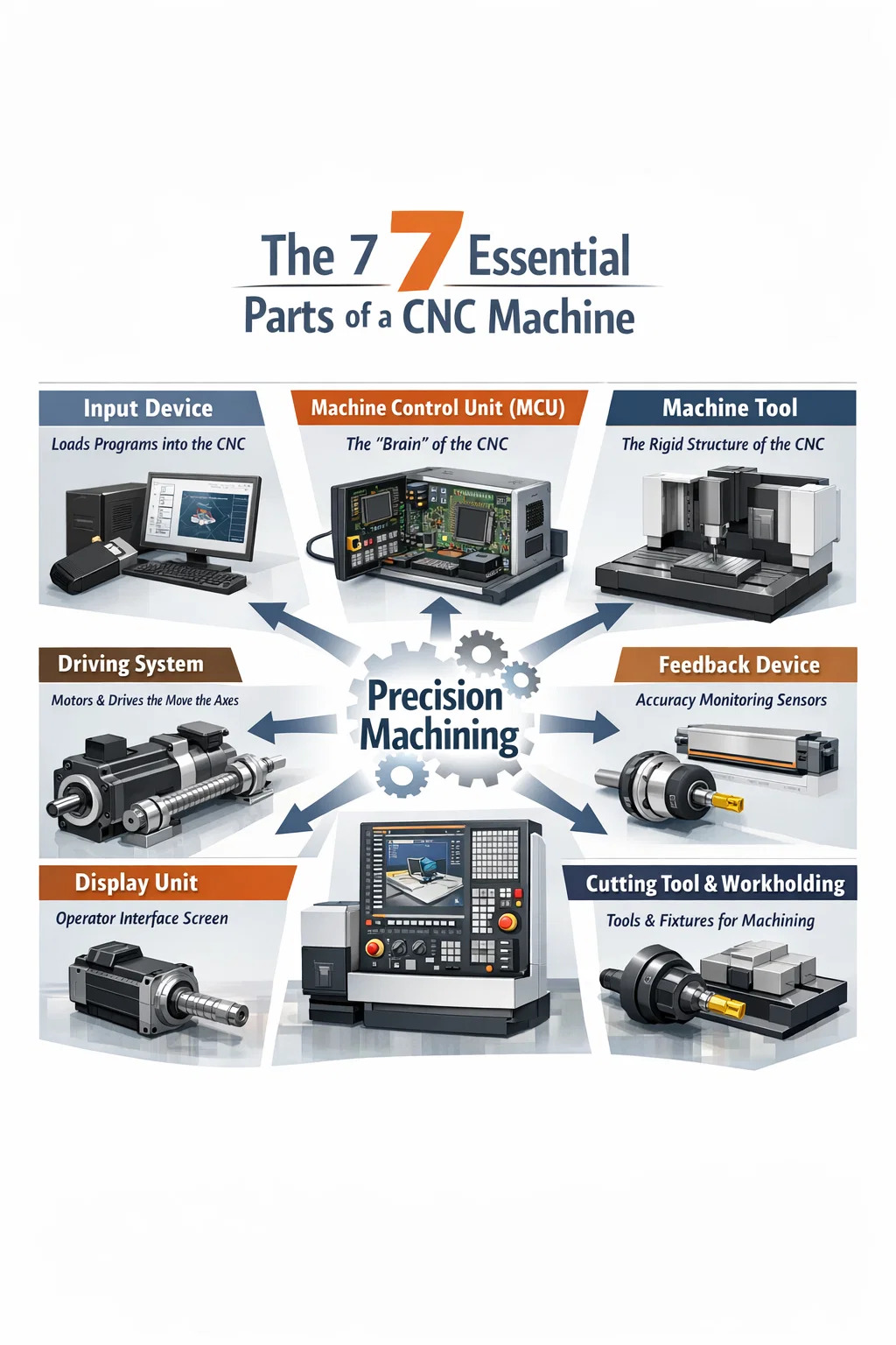 Al comparar equipos CNC de diferentes fabricantes o con diferentes precios, el uso del marco de 7 partes le brinda un método de evaluación estructurado. En lugar de comparar únicamente la potencia del husillo (que es lo que mencionan la mayoría de los folletos de ventas), puede evaluar cada subsistema según sus requisitos de producción específicos.